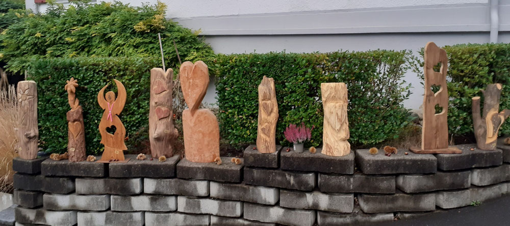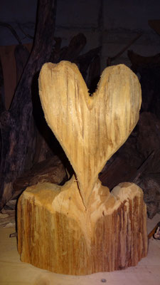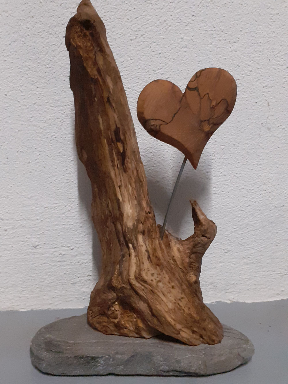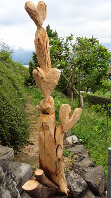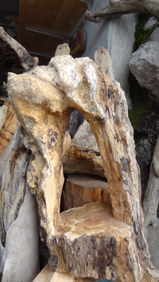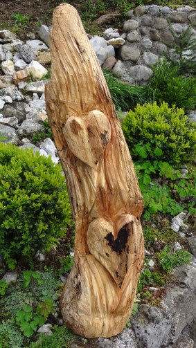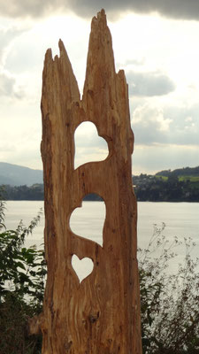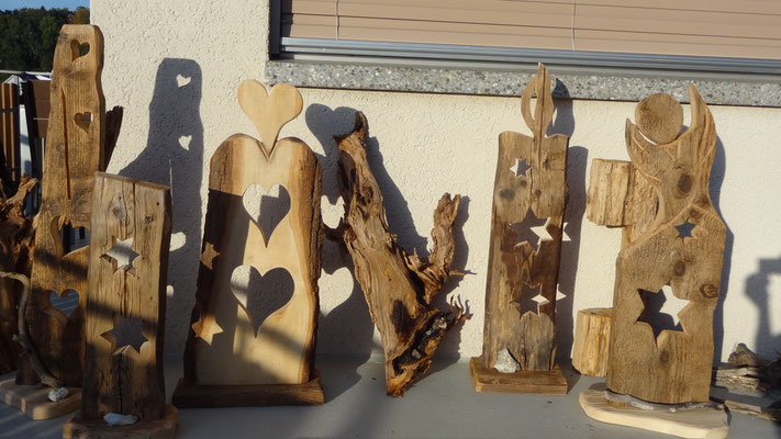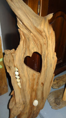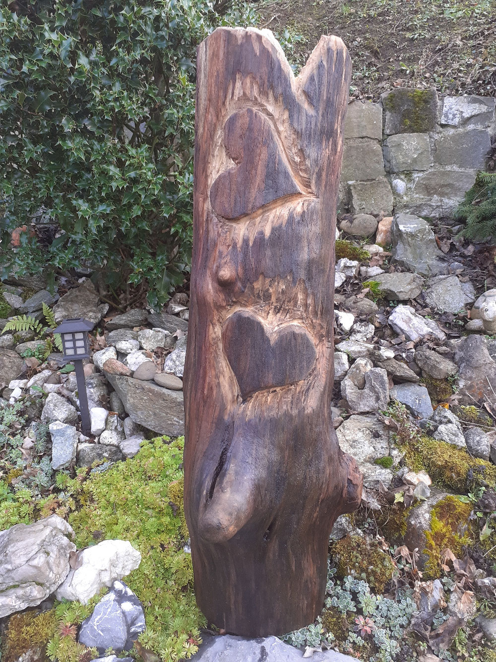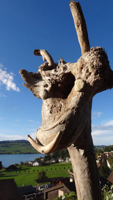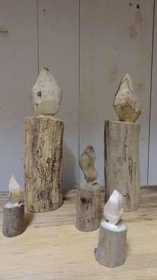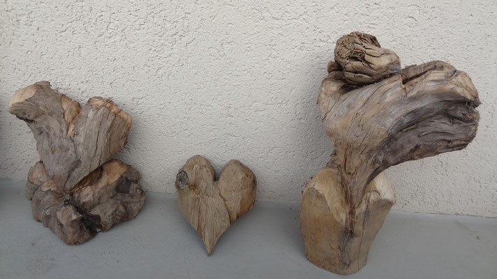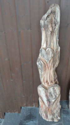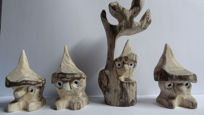 Wir sägen und schnitzen laufend Skulpturen und Objekte aus Holz und Schwemmholz.